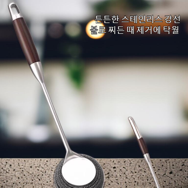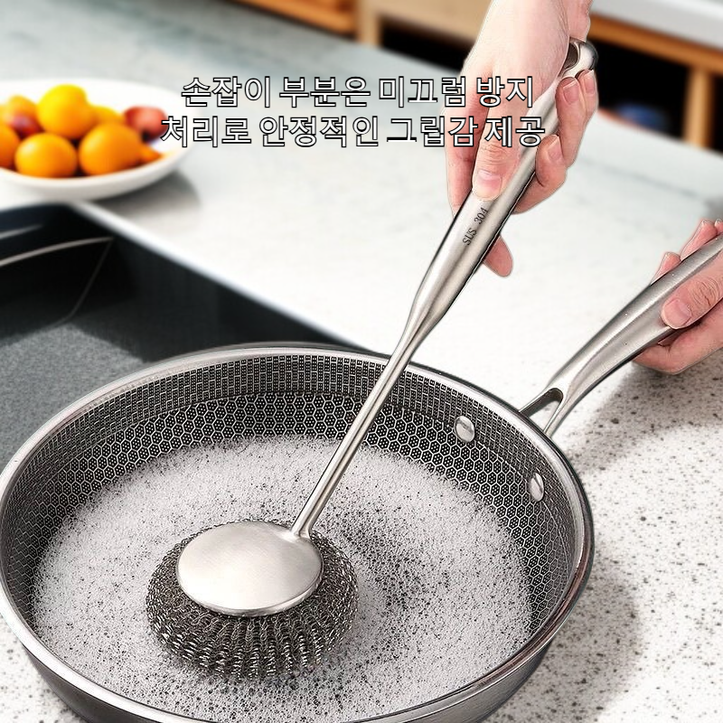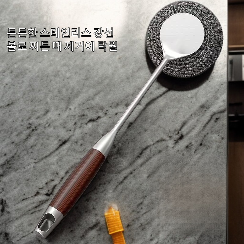 긴 손잡이로 편리한 사용, 강철 양모로 강력한 세척력, 주방 냄비와 식기 청소에 적합, 내구성 우수, 반복 사용 가능