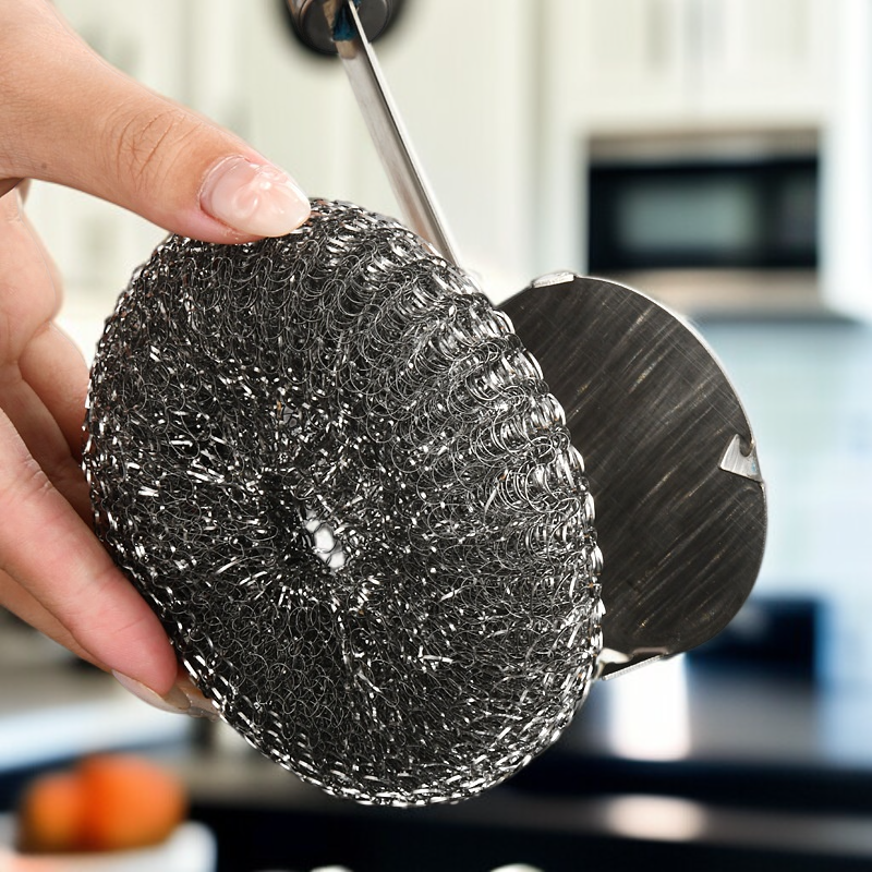 주방 긴 손잡이 냄비 세척 강철 양모